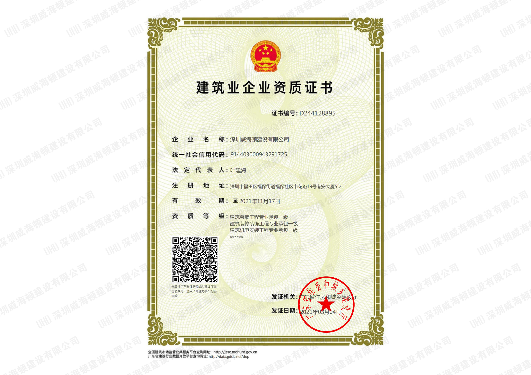施工一级资质证书